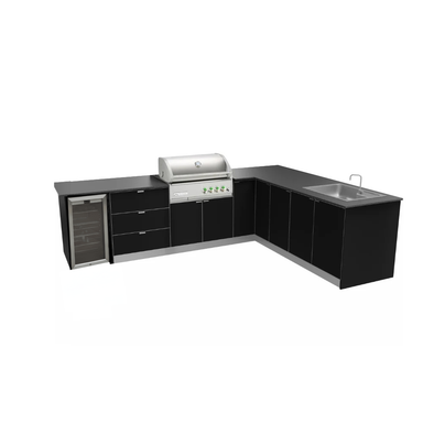 The Revolution L-Shaped Kitchen With 4 Burner BBQ + Fridge By Coleman Available in Black matte or Black gloss Coleman Revolution 4 Burner BBQ L-Sh...